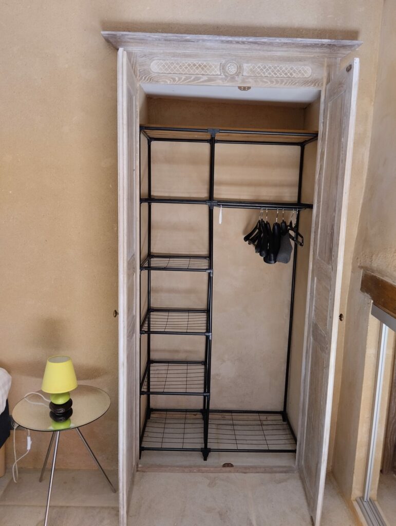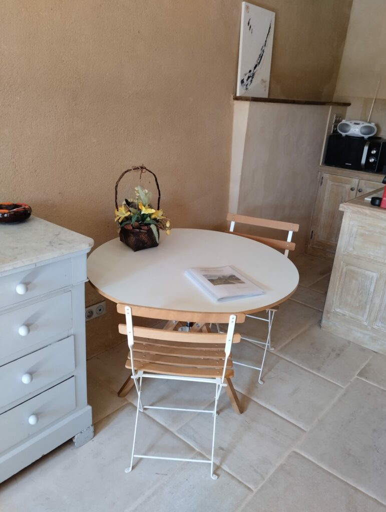 Gîte « Le petit nid » Publié le 26 avril 202512 janvier 2026 par Cindy Charenton Coin repas table à manger Kitchenette Kitchenette Nespresso Boite à thé Lit 160 cm Lit 160 cm Armoire , penderie Porte d’entrée Salle de douche toilette Brochures touristiques Façade du studio terrasse terrasse vue de la terrasse vue sur rue